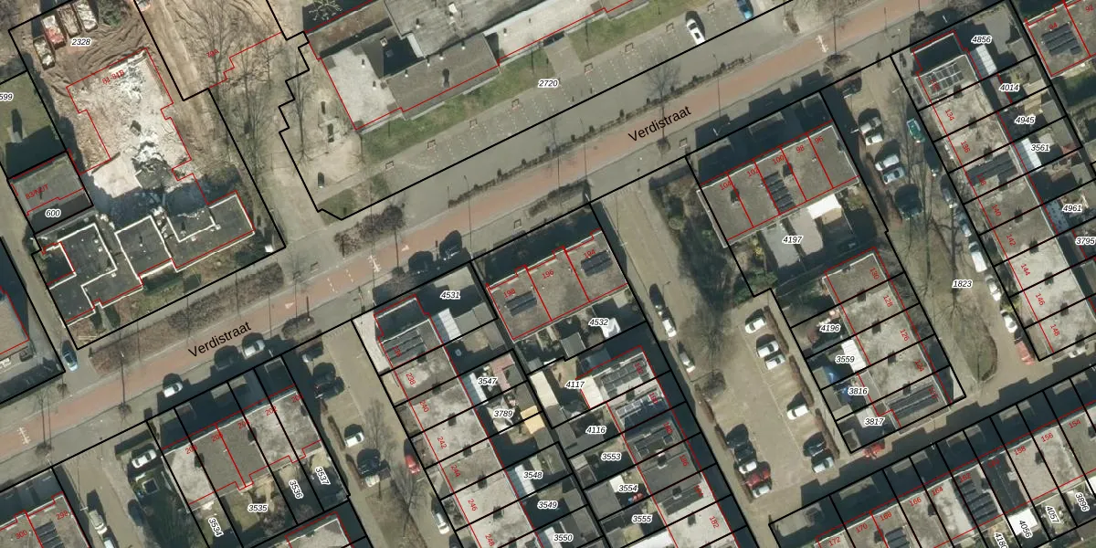 Het perceel waarop Verdistraat 196 staat heeft een oppervlakte van 729 m². Dit is een groot perceel. De perceeloppervlakte wordt geregistreerd door het Kadaster. Gedetailleerde informatie over de maten van dit perceel kunt u vinden in het rapport Kadastrale kaart met maatvoering van Verdistraat 196.