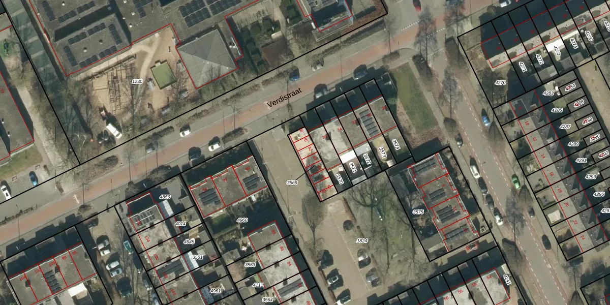 Verdistraat 42 is gelegen op kadastraal perceel OSS00L3569. Deze kadastrale aanduiding is uniek en wordt gebruikt door het Kadaster om eigendomsrechten en andere zakelijke rechten vast te leggen. Het perceel maakt onderdeel uit van de kadastrale gemeente Oss.