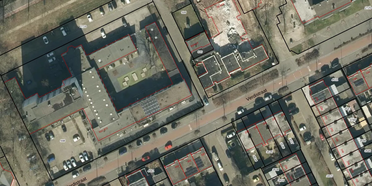 Het perceel waarop Verdistraat 81-R staat heeft een oppervlakte van 5691 m². Dit is een zeer groot perceel. De perceeloppervlakte wordt geregistreerd door het Kadaster. Gedetailleerde informatie over de maten van dit perceel kunt u vinden in het rapport Kadastrale kaart met maatvoering van Verdistraat 81-R.