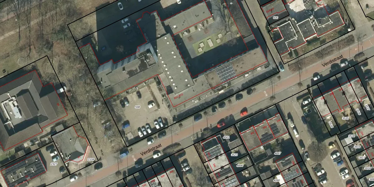 Het perceel waarop Verdistraat 85-F staat heeft een oppervlakte van 5691 m². Dit is een zeer groot perceel. De perceeloppervlakte wordt geregistreerd door het Kadaster. Gedetailleerde informatie over de maten van dit perceel kunt u vinden in het rapport Kadastrale kaart met maatvoering van Verdistraat 85-F.