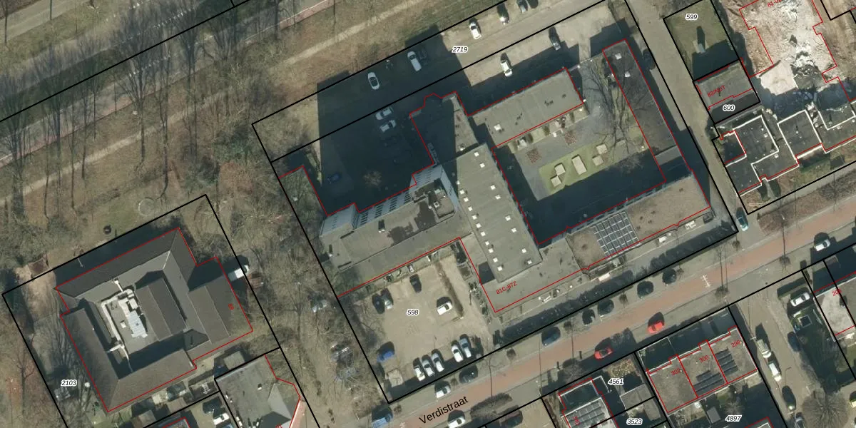 Het perceel waarop Verdistraat 87-G staat heeft een oppervlakte van 5691 m². Dit is een zeer groot perceel. De perceeloppervlakte wordt geregistreerd door het Kadaster. Gedetailleerde informatie over de maten van dit perceel kunt u vinden in het rapport Kadastrale kaart met maatvoering van Verdistraat 87-G.