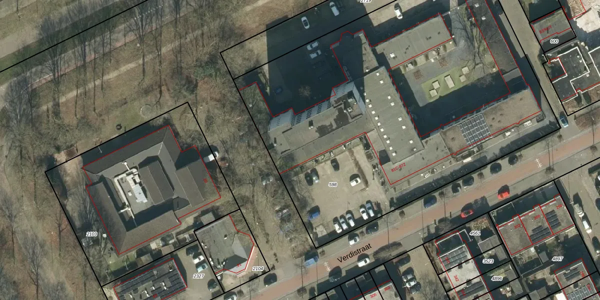 Het perceel waarop Verdistraat 87-W staat heeft een oppervlakte van 5691 m². Dit is een zeer groot perceel. De perceeloppervlakte wordt geregistreerd door het Kadaster. Gedetailleerde informatie over de maten van dit perceel kunt u vinden in het rapport Kadastrale kaart met maatvoering van Verdistraat 87-W.