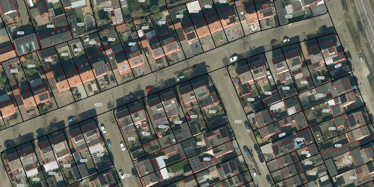 Vezelstraat 10 is gelegen op kadastraal perceel OSS00E3508. Deze kadastrale aanduiding is uniek en wordt gebruikt door het Kadaster om eigendomsrechten en andere zakelijke rechten vast te leggen. Het perceel maakt onderdeel uit van de kadastrale gemeente Oss.