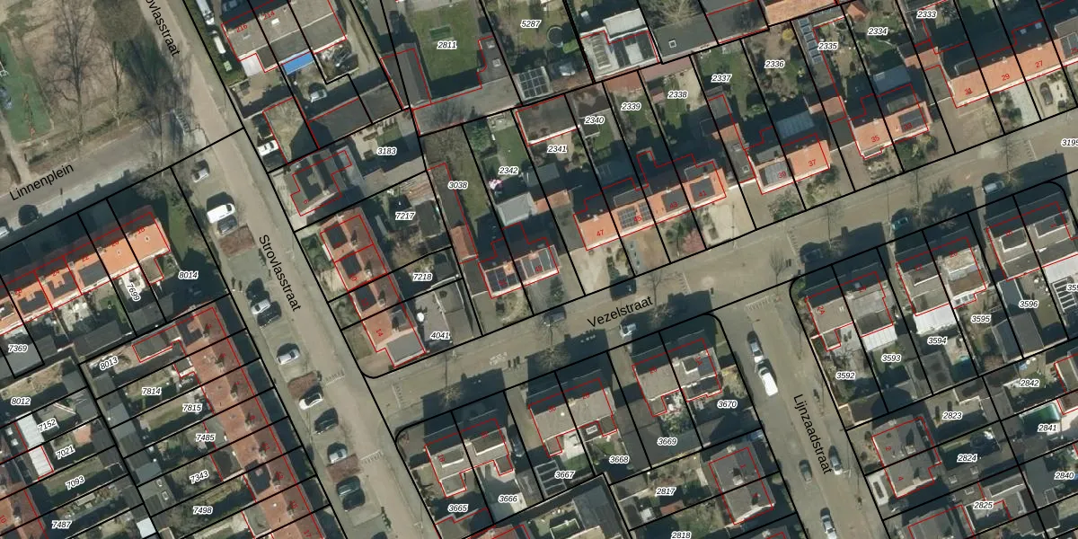 Gebruik de zoekbalk of klik op een perceel voor informatie over de adressen binnen dit perceel.