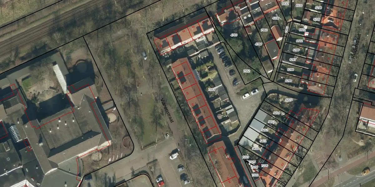 Het perceel waarop Vianenstraat 62 staat heeft een oppervlakte van 3330 m². Dit is een zeer groot perceel. De perceeloppervlakte wordt geregistreerd door het Kadaster. Gedetailleerde informatie over de maten van dit perceel kunt u vinden in het rapport Kadastrale kaart met maatvoering van Vianenstraat 62.