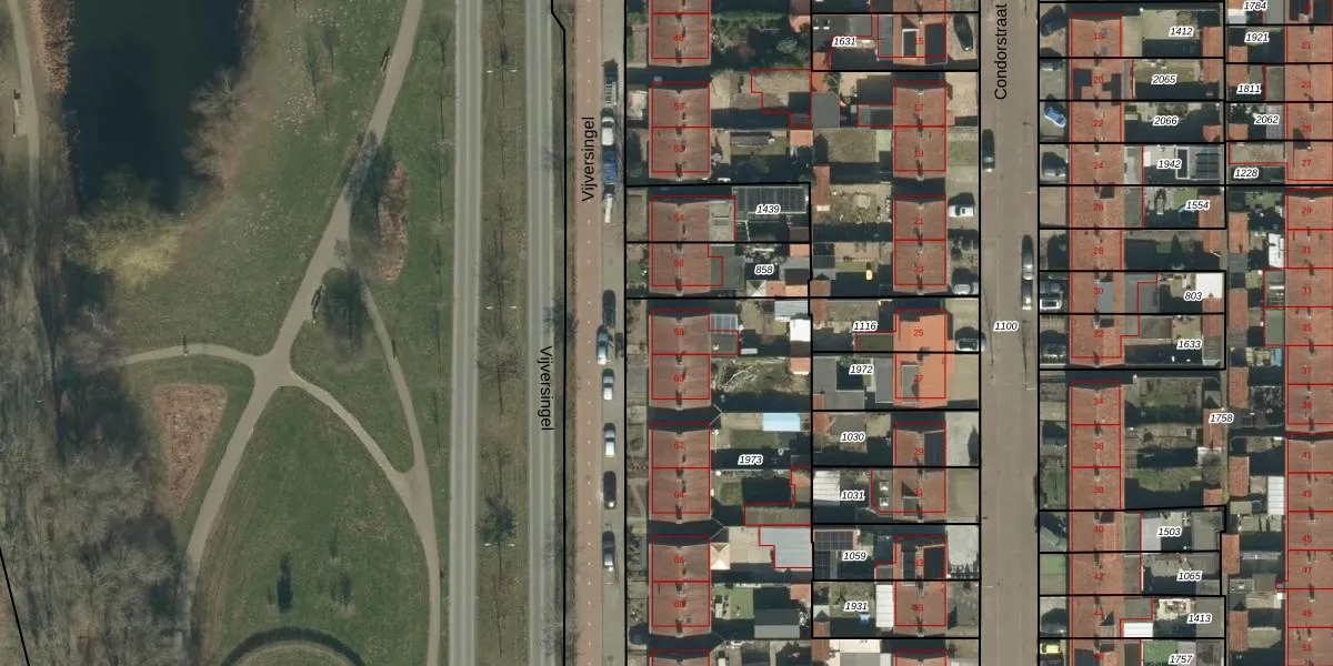 Het perceel waarop Vijversingel 58 staat heeft een oppervlakte van 2271 m². Dit is een zeer groot perceel. De perceeloppervlakte wordt geregistreerd door het Kadaster. Gedetailleerde informatie over de maten van dit perceel kunt u vinden in het rapport Kadastrale kaart met maatvoering van Vijversingel 58.