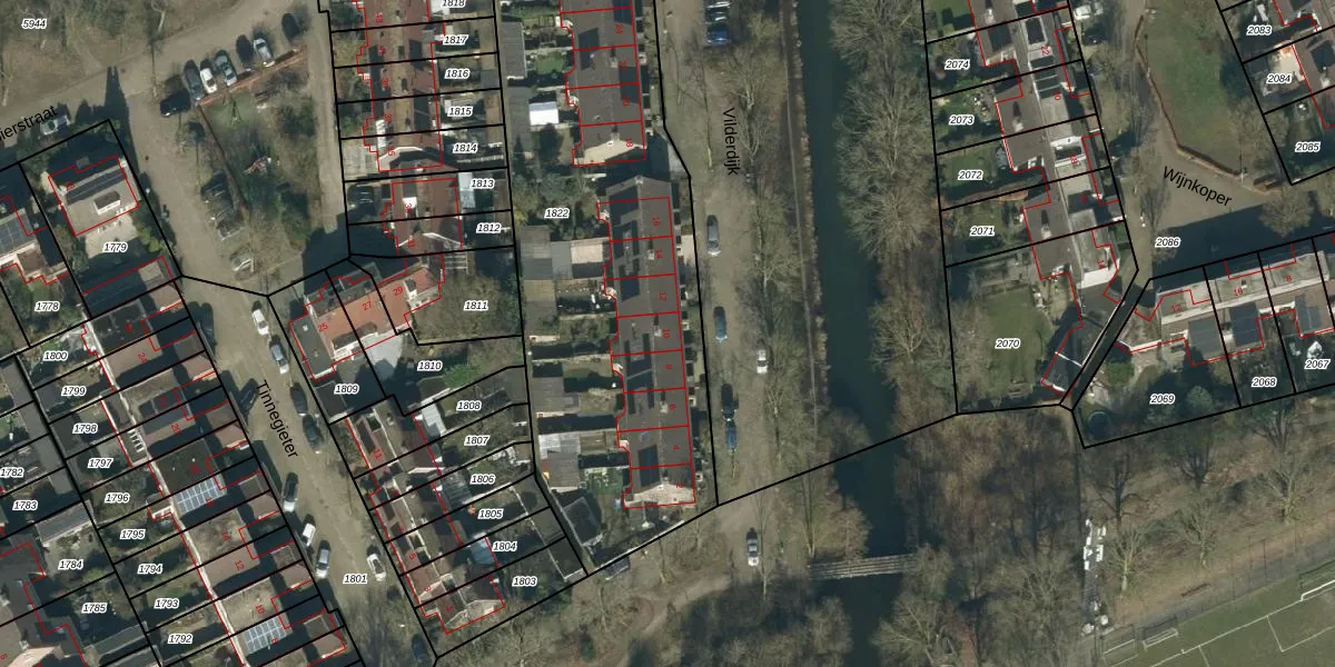Het perceel waarop Vilderdijk 10 staat heeft een oppervlakte van 2640 m². Dit is een zeer groot perceel. De perceeloppervlakte wordt geregistreerd door het Kadaster. Gedetailleerde informatie over de maten van dit perceel kunt u vinden in het rapport Kadastrale kaart met maatvoering van Vilderdijk 10.