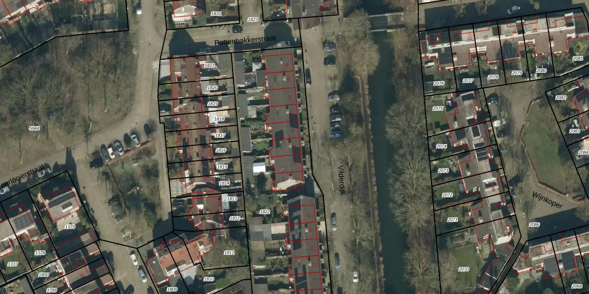 Het perceel waarop Vilderdijk 22 staat heeft een oppervlakte van 2640 m². Dit is een zeer groot perceel. De perceeloppervlakte wordt geregistreerd door het Kadaster. Gedetailleerde informatie over de maten van dit perceel kunt u vinden in het rapport Kadastrale kaart met maatvoering van Vilderdijk 22.