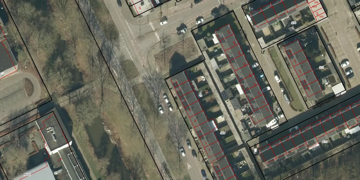 Het perceel waarop Vivaldistraat 62 staat heeft een oppervlakte van 3755 m². Dit is een zeer groot perceel. De perceeloppervlakte wordt geregistreerd door het Kadaster. Gedetailleerde informatie over de maten van dit perceel kunt u vinden in het rapport Kadastrale kaart met maatvoering van Vivaldistraat 62.