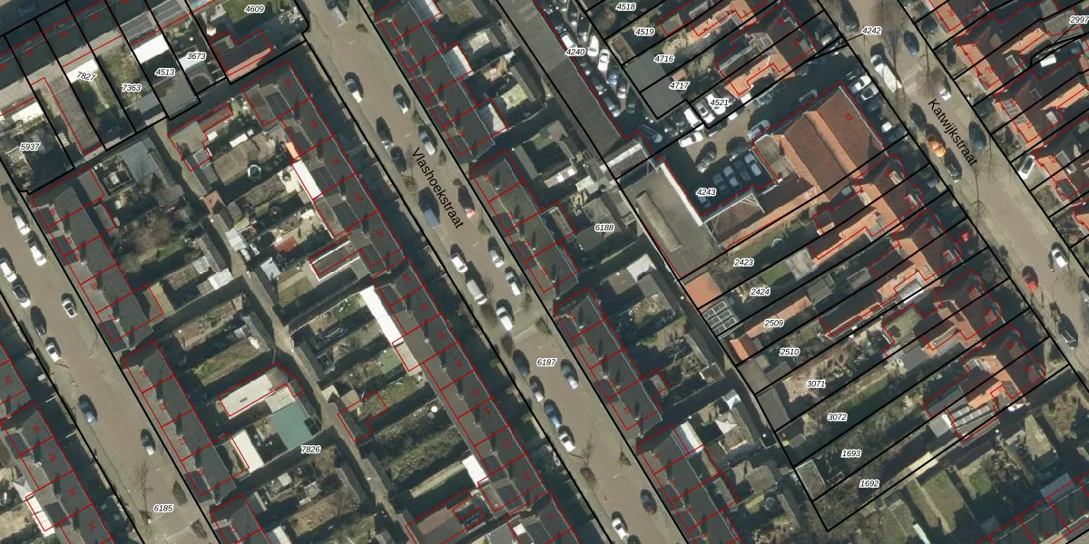 Het perceel waarop Vlashoekstraat 19 staat heeft een oppervlakte van 6766 m². Dit is een zeer groot perceel. De perceeloppervlakte wordt geregistreerd door het Kadaster. Gedetailleerde informatie over de maten van dit perceel kunt u vinden in het rapport Kadastrale kaart met maatvoering van Vlashoekstraat 19.