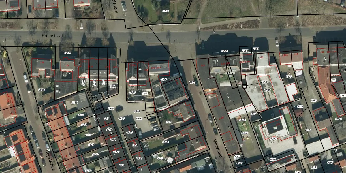 Vlasstraat 1-A is gelegen op kadastraal perceel OSS00E6175. Deze kadastrale aanduiding is uniek en wordt gebruikt door het Kadaster om eigendomsrechten en andere zakelijke rechten vast te leggen. Het perceel maakt onderdeel uit van de kadastrale gemeente Oss.