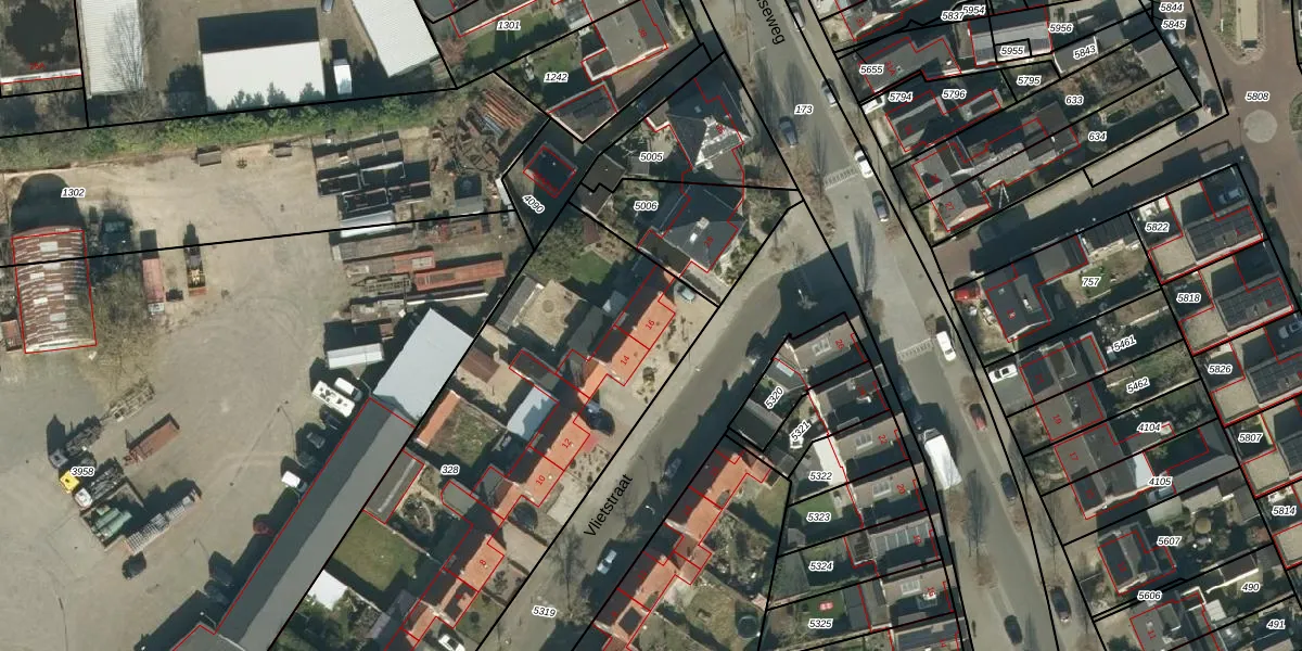 Het perceel waarop Vlietstraat 16 staat heeft een oppervlakte van 2470 m². Dit is een zeer groot perceel. De perceeloppervlakte wordt geregistreerd door het Kadaster. Gedetailleerde informatie over de maten van dit perceel kunt u vinden in het rapport Kadastrale kaart met maatvoering van Vlietstraat 16.
