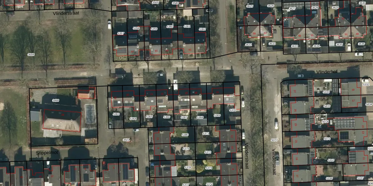 Gebruik de zoekbalk of klik op een perceel voor informatie over de adressen binnen dit perceel.