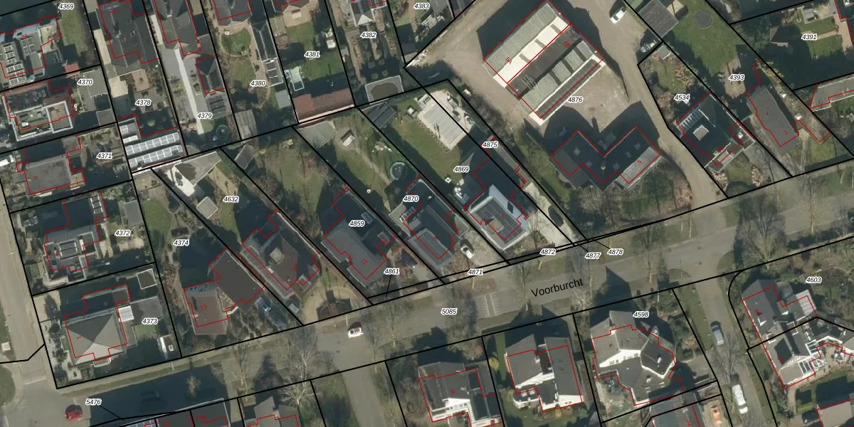 Voorburcht 9 is gelegen op kadastraal perceel OSS00D4870. Deze kadastrale aanduiding is uniek en wordt gebruikt door het Kadaster om eigendomsrechten en andere zakelijke rechten vast te leggen. Het perceel maakt onderdeel uit van de kadastrale gemeente Oss.