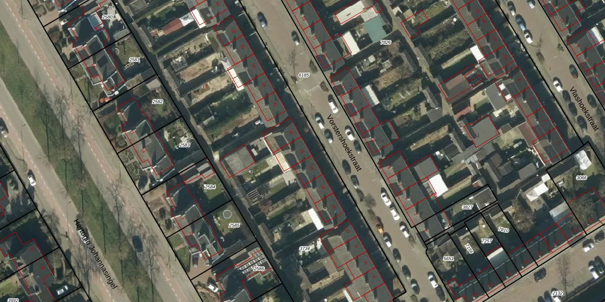 Vorstershoekstraat 18 is gelegen op kadastraal perceel OSS00E3734. Deze kadastrale aanduiding is uniek en wordt gebruikt door het Kadaster om eigendomsrechten en andere zakelijke rechten vast te leggen. Het perceel maakt onderdeel uit van de kadastrale gemeente Oss.