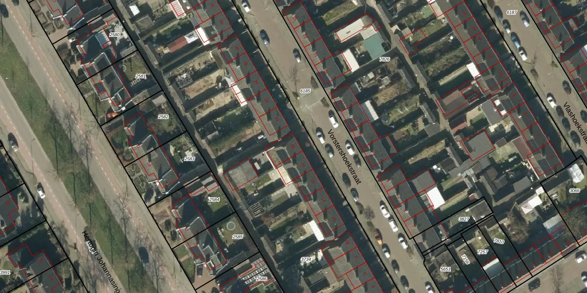 Vorstershoekstraat 20 is gelegen op kadastraal perceel OSS00E3734. Deze kadastrale aanduiding is uniek en wordt gebruikt door het Kadaster om eigendomsrechten en andere zakelijke rechten vast te leggen. Het perceel maakt onderdeel uit van de kadastrale gemeente Oss.