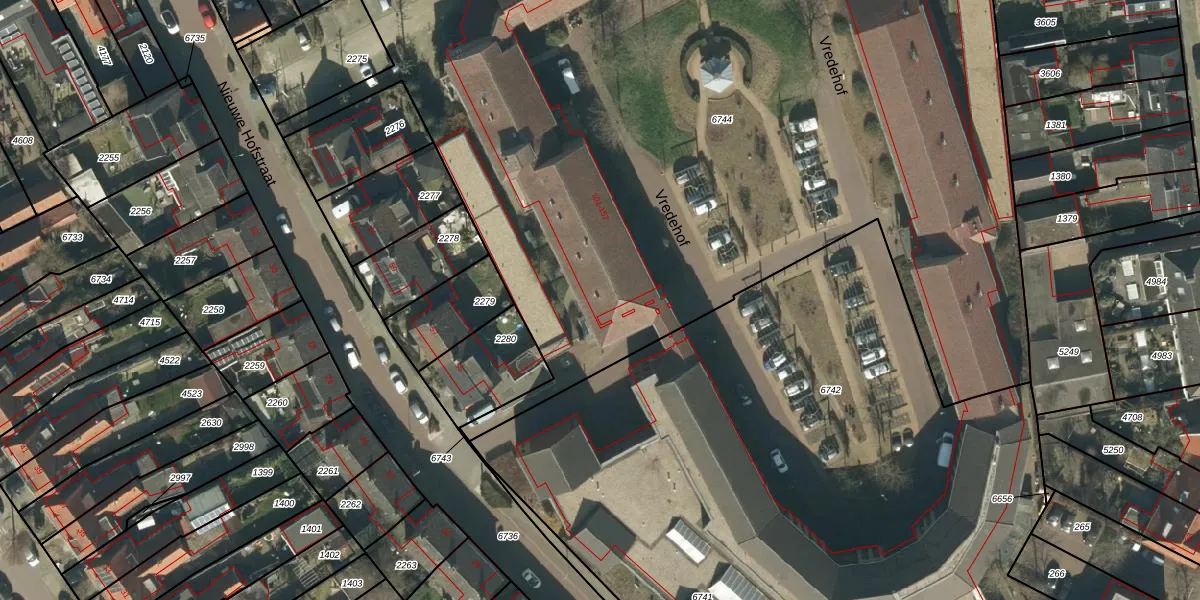 Vredehof 101 is gelegen op kadastraal perceel OSS00E6744. Deze kadastrale aanduiding is uniek en wordt gebruikt door het Kadaster om eigendomsrechten en andere zakelijke rechten vast te leggen. Het perceel maakt onderdeel uit van de kadastrale gemeente Oss.