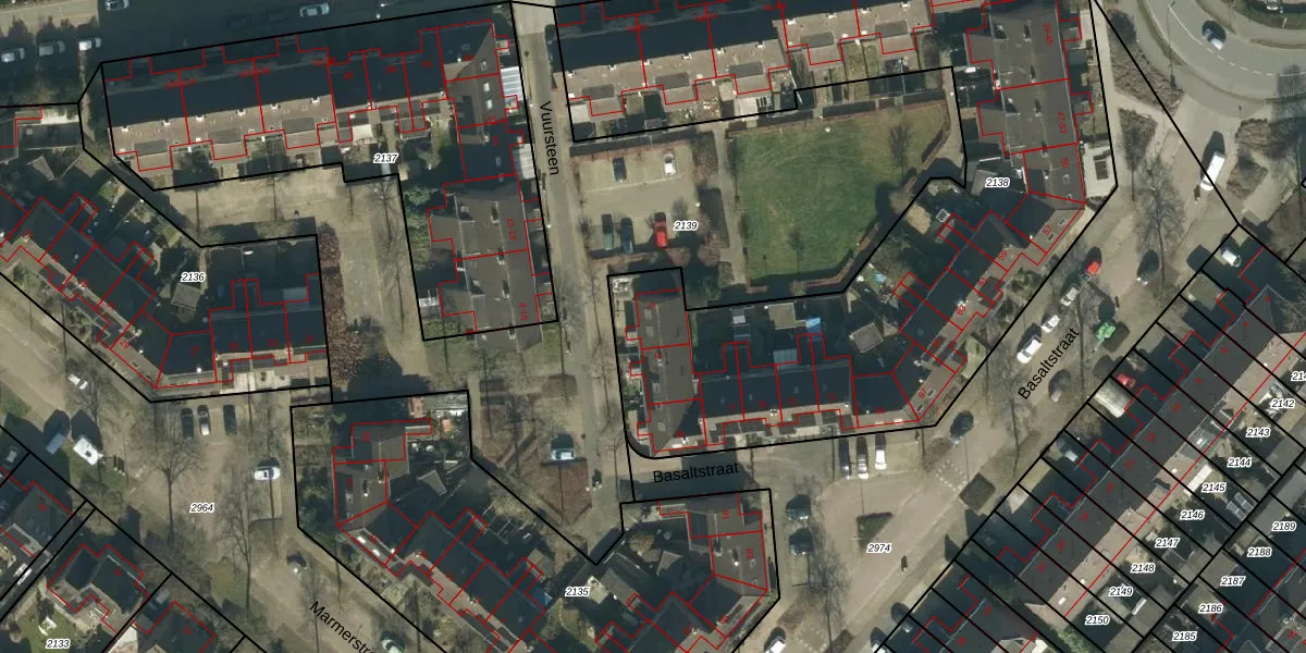 Het perceel waarop Vuursteen 5 staat heeft een oppervlakte van 3850 m². Dit is een zeer groot perceel. De perceeloppervlakte wordt geregistreerd door het Kadaster. Gedetailleerde informatie over de maten van dit perceel kunt u vinden in het rapport Kadastrale kaart met maatvoering van Vuursteen 5.