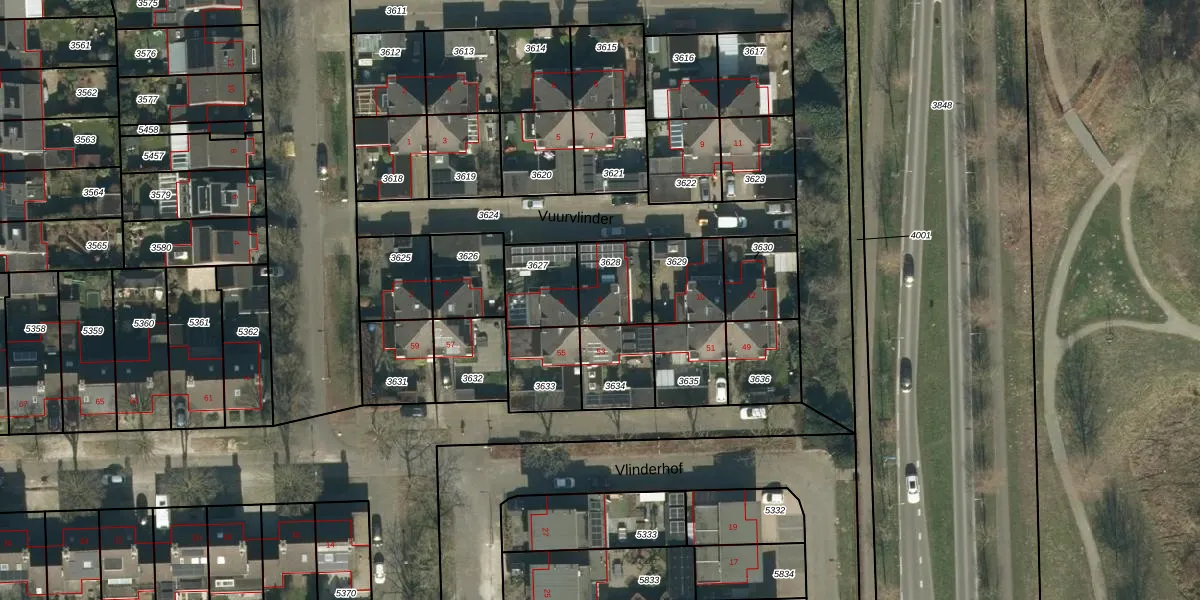 Gebruik de zoekbalk of klik op een perceel voor informatie over de adressen binnen dit perceel.