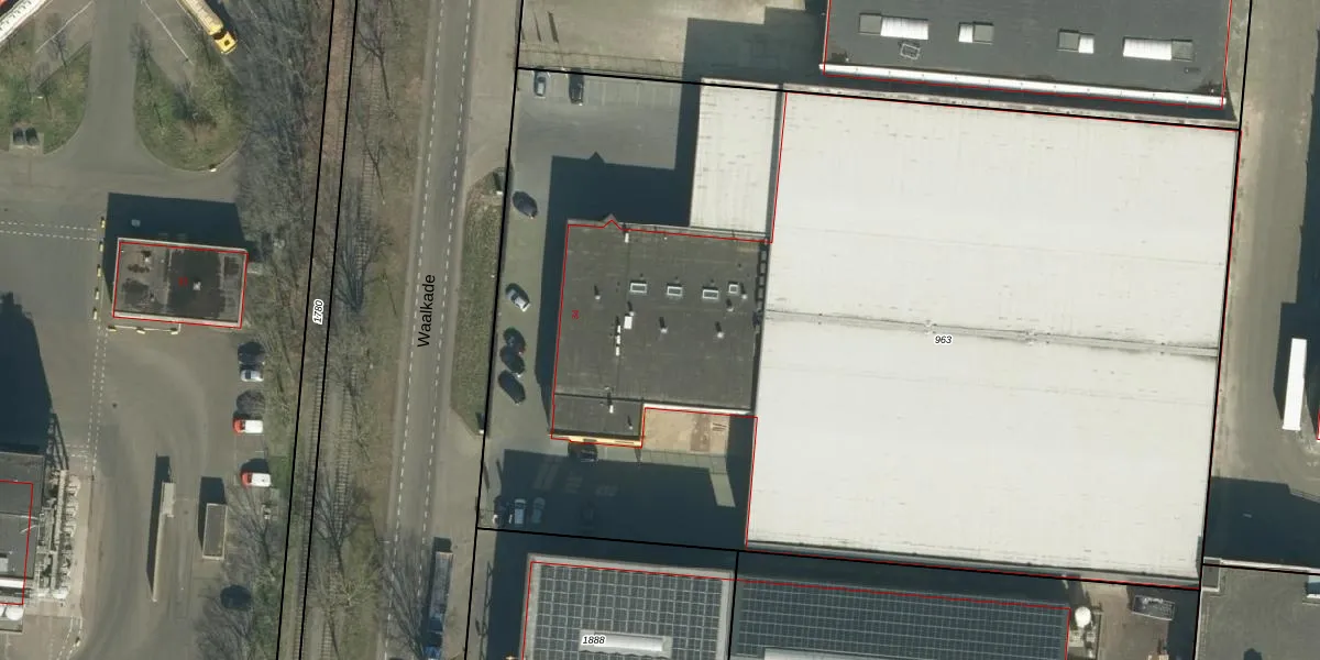Het perceel waarop Waalkade 34-B staat heeft een oppervlakte van 7700 m². Dit is een zeer groot perceel. De perceeloppervlakte wordt geregistreerd door het Kadaster. Gedetailleerde informatie over de maten van dit perceel kunt u vinden in het rapport Kadastrale kaart met maatvoering van Waalkade 34-B.