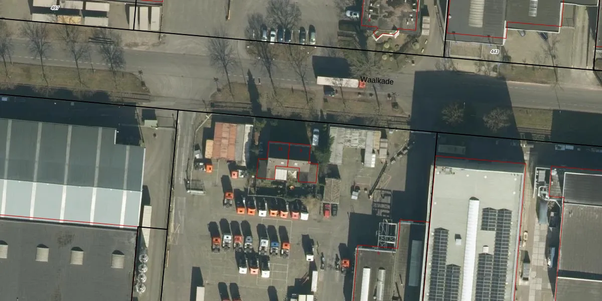 Het perceel waarop Waalkade 9 staat heeft een oppervlakte van 1,1 ha. Dit is een zeer groot perceel. De perceeloppervlakte wordt geregistreerd door het Kadaster. Gedetailleerde informatie over de maten van dit perceel kunt u vinden in het rapport Kadastrale kaart met maatvoering van Waalkade 9.