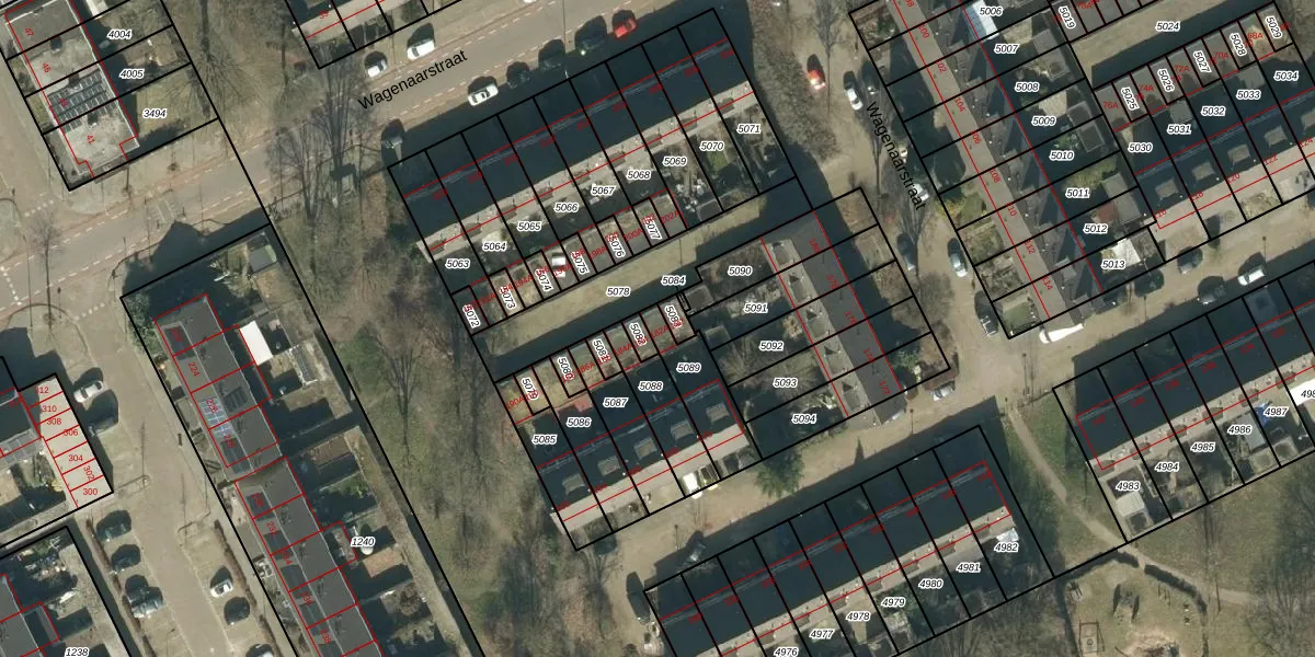 Wagenaarstraat 182-A is gelegen op kadastraal perceel OSS00L5089. Deze kadastrale aanduiding is uniek en wordt gebruikt door het Kadaster om eigendomsrechten en andere zakelijke rechten vast te leggen. Het perceel maakt onderdeel uit van de kadastrale gemeente Oss.