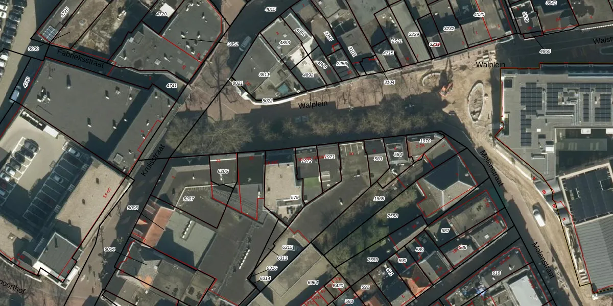 Het perceel waarop Walplein 16 staat heeft een oppervlakte van 120 m². Dit is een middelgroot perceel. De perceeloppervlakte wordt geregistreerd door het Kadaster. Gedetailleerde informatie over de maten van dit perceel kunt u vinden in het rapport Kadastrale kaart met maatvoering van Walplein 16.