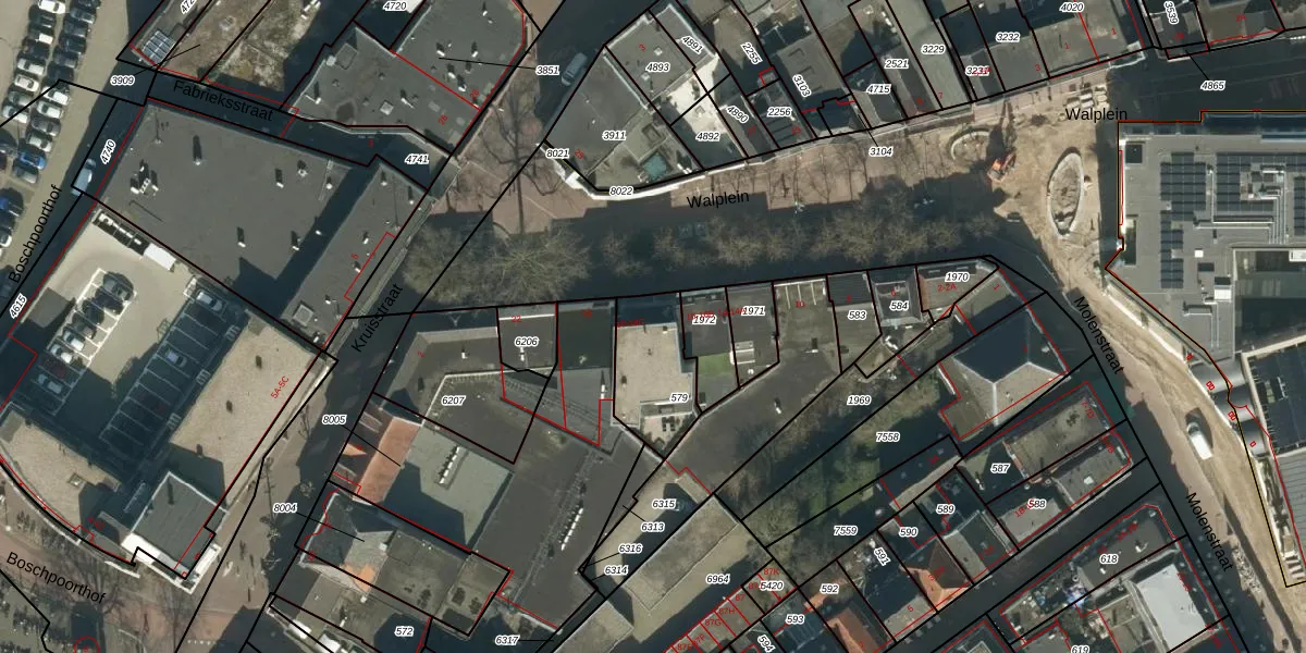 Walplein 18-A is gelegen op kadastraal perceel OSS00E579. Deze kadastrale aanduiding is uniek en wordt gebruikt door het Kadaster om eigendomsrechten en andere zakelijke rechten vast te leggen. Het perceel maakt onderdeel uit van de kadastrale gemeente Oss.