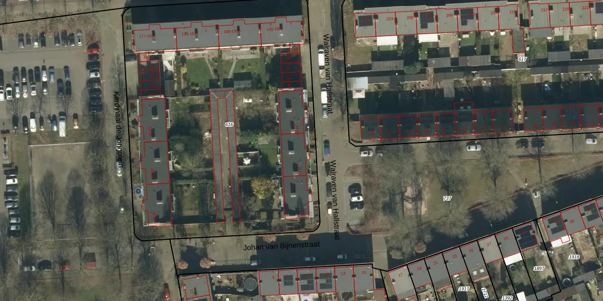 Walraven van Hallstraat 12 is gelegen op kadastraal perceel OSS00G616. Deze kadastrale aanduiding is uniek en wordt gebruikt door het Kadaster om eigendomsrechten en andere zakelijke rechten vast te leggen. Het perceel maakt onderdeel uit van de kadastrale gemeente Oss.