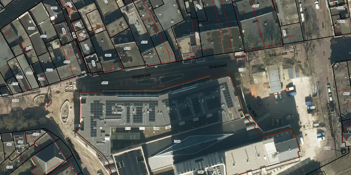 Het perceel waarop Walstraat 1-F staat heeft een oppervlakte van 6211 m². Dit is een zeer groot perceel. De perceeloppervlakte wordt geregistreerd door het Kadaster. Gedetailleerde informatie over de maten van dit perceel kunt u vinden in het rapport Kadastrale kaart met maatvoering van Walstraat 1-F.