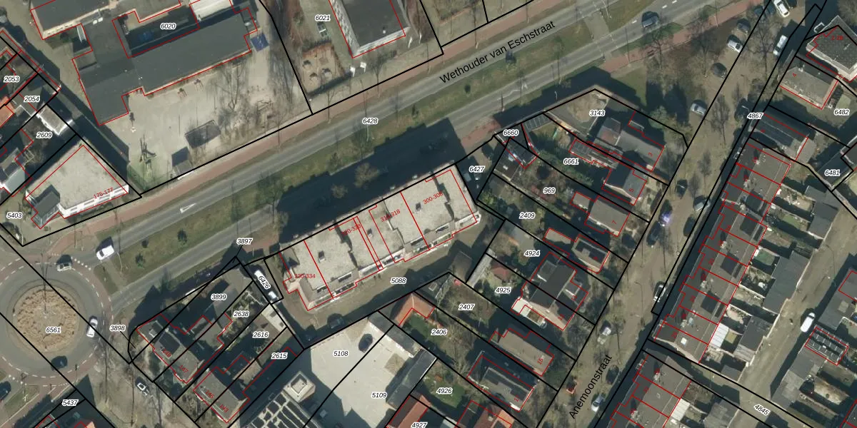 Wethouder van Eschstraat 308 is gelegen op kadastraal perceel OSS00E5088. Deze kadastrale aanduiding is uniek en wordt gebruikt door het Kadaster om eigendomsrechten en andere zakelijke rechten vast te leggen. Het perceel maakt onderdeel uit van de kadastrale gemeente Oss.