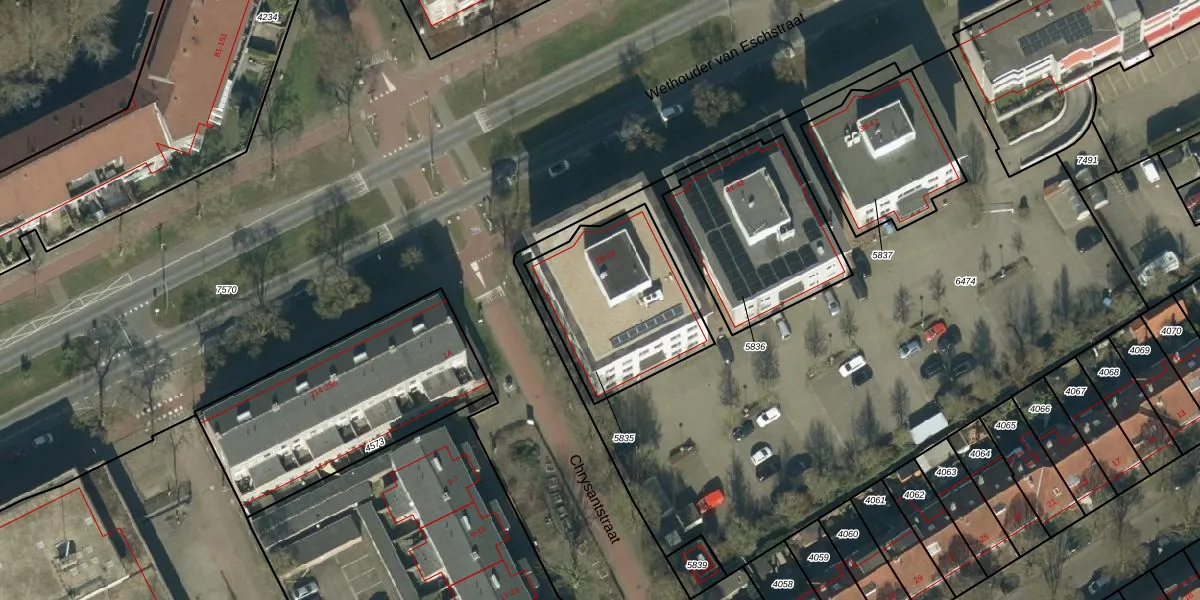 Het perceel waarop Wethouder van Eschstraat 58 staat heeft een oppervlakte van 592 m². Dit is een groot perceel. De perceeloppervlakte wordt geregistreerd door het Kadaster. Gedetailleerde informatie over de maten van dit perceel kunt u vinden in het rapport Kadastrale kaart met maatvoering van Wethouder van Eschstraat 58.