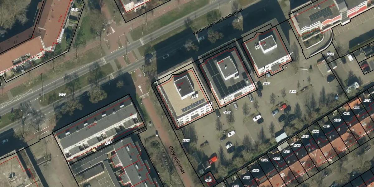 Het perceel waarop Wethouder van Eschstraat 60 staat heeft een oppervlakte van 592 m². Dit is een groot perceel. De perceeloppervlakte wordt geregistreerd door het Kadaster. Gedetailleerde informatie over de maten van dit perceel kunt u vinden in het rapport Kadastrale kaart met maatvoering van Wethouder van Eschstraat 60.
