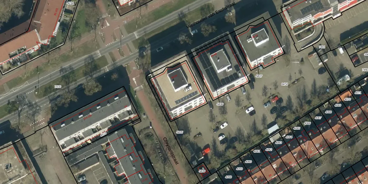 Het perceel waarop Wethouder van Eschstraat 64 staat heeft een oppervlakte van 592 m². Dit is een groot perceel. De perceeloppervlakte wordt geregistreerd door het Kadaster. Gedetailleerde informatie over de maten van dit perceel kunt u vinden in het rapport Kadastrale kaart met maatvoering van Wethouder van Eschstraat 64.