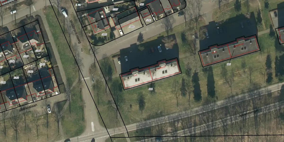 Het perceel waarop het adres ligt is OSS00-F-684. De afkorting 'OSS00' staat voor kadastrale gemeente Oss. De gemiddelde perceelgrootte in Oss is 2394,22 m². Dit perceel is kleiner: de perceeloppervlakte bedraagt 501 m². Het grootste perceel in de kadastrale gemeente is 36,1 ha. Het kleinste perceel heeft een oppervlakte van 0 m². Op het perceel zijn 16 adressen aanwezig. De laatste wijziging in het de Basisregistratie Kadaster (BRK) was op 09-06-2009.