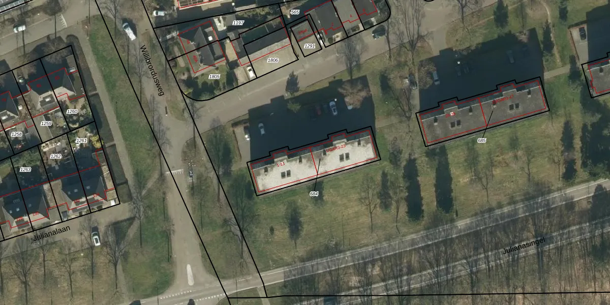Het perceel waarop het adres ligt is OSS00-F-684. De afkorting 'OSS00' staat voor kadastrale gemeente Oss. De gemiddelde perceelgrootte in Oss is 2394,22 m². Dit perceel is kleiner: de perceeloppervlakte bedraagt 501 m². Het grootste perceel in de kadastrale gemeente is 36,1 ha. Het kleinste perceel heeft een oppervlakte van 0 m². Op het perceel zijn 16 adressen aanwezig. De huidige grenzen van het perceel zijn digitaal in de Basisregistratie Kadaster (BRK) geregistreerd op 09-06-2009.