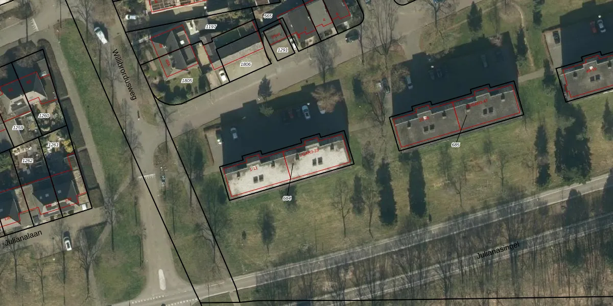 Wilgenstraat 13 is gelegen op kadastraal perceel OSS00F684. Deze kadastrale aanduiding is uniek en wordt gebruikt door het Kadaster om eigendomsrechten en andere zakelijke rechten vast te leggen. Het perceel maakt onderdeel uit van de kadastrale gemeente Oss.