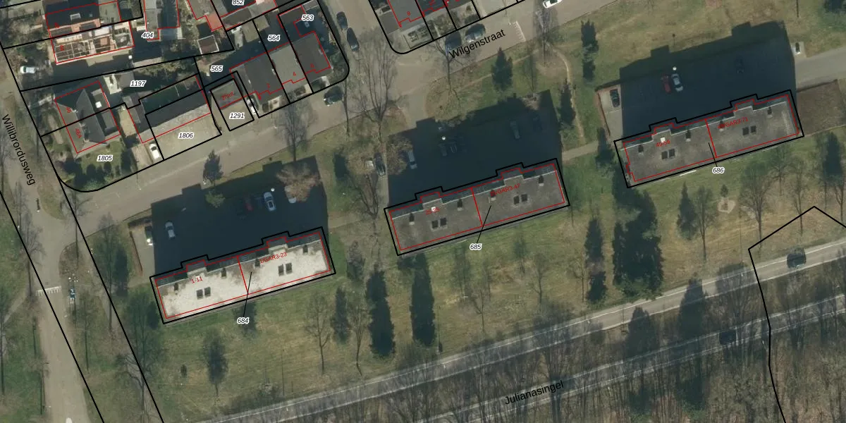 Het perceel waarop Wilgenstraat 25 staat heeft een oppervlakte van 501 m². Dit is een groot perceel. De perceeloppervlakte wordt geregistreerd door het Kadaster. Gedetailleerde informatie over de maten van dit perceel kunt u vinden in het rapport Kadastrale kaart met maatvoering van Wilgenstraat 25.