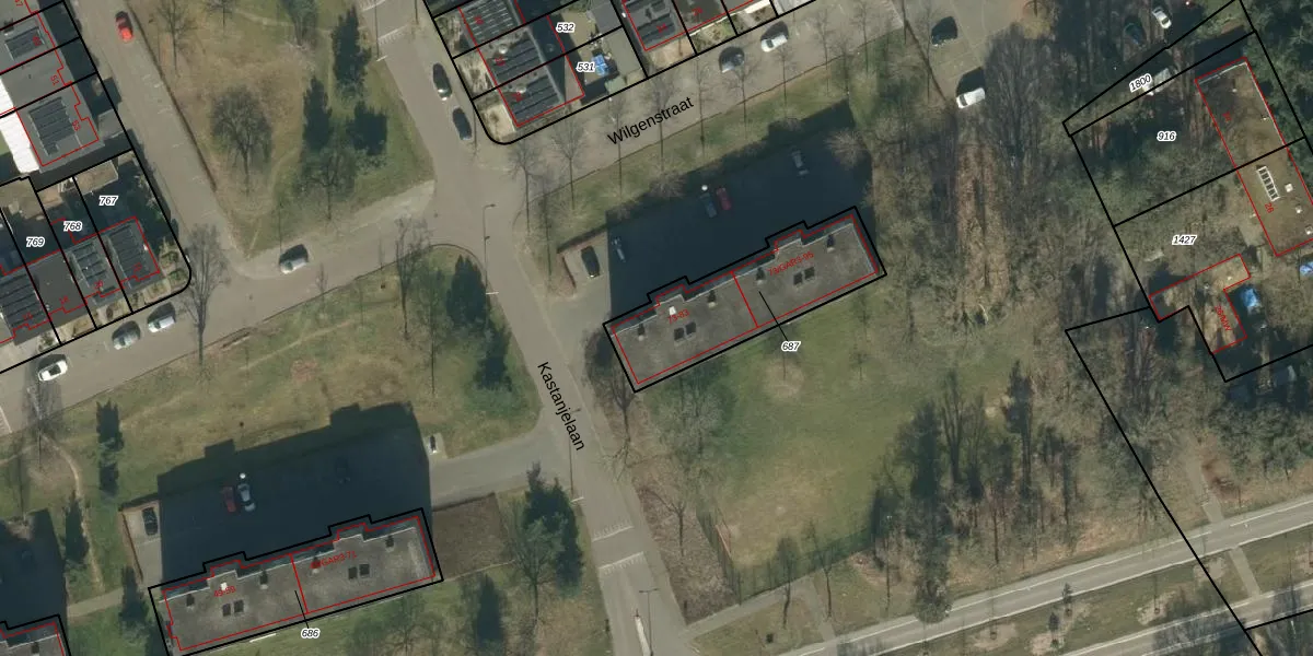 Wilgenstraat 73 is gelegen op kadastraal perceel OSS00F687. Deze kadastrale aanduiding is uniek en wordt gebruikt door het Kadaster om eigendomsrechten en andere zakelijke rechten vast te leggen. Het perceel maakt onderdeel uit van de kadastrale gemeente Oss.