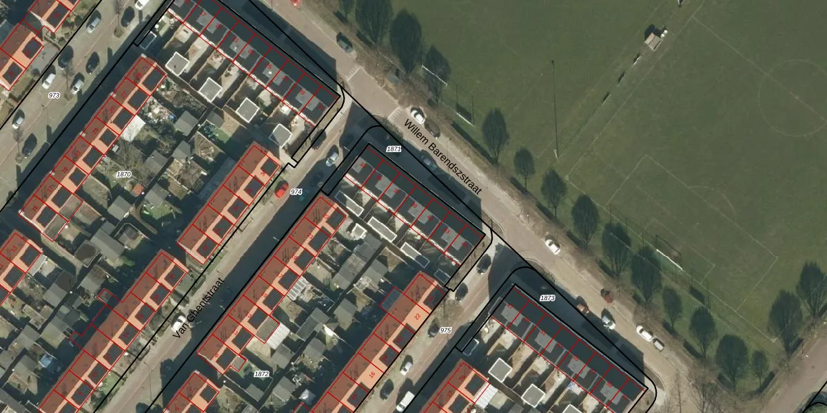 Het perceel waarop Willem Barendszstraat 39 staat heeft een oppervlakte van 4315 m². Dit is een zeer groot perceel. De perceeloppervlakte wordt geregistreerd door het Kadaster. Gedetailleerde informatie over de maten van dit perceel kunt u vinden in het rapport Kadastrale kaart met maatvoering van Willem Barendszstraat 39.
