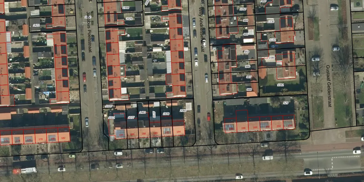 Het perceel waarop Willy Andriessenstraat 2 staat heeft een oppervlakte van 4679 m². Dit is een zeer groot perceel. De perceeloppervlakte wordt geregistreerd door het Kadaster. Gedetailleerde informatie over de maten van dit perceel kunt u vinden in het rapport Kadastrale kaart met maatvoering van Willy Andriessenstraat 2.