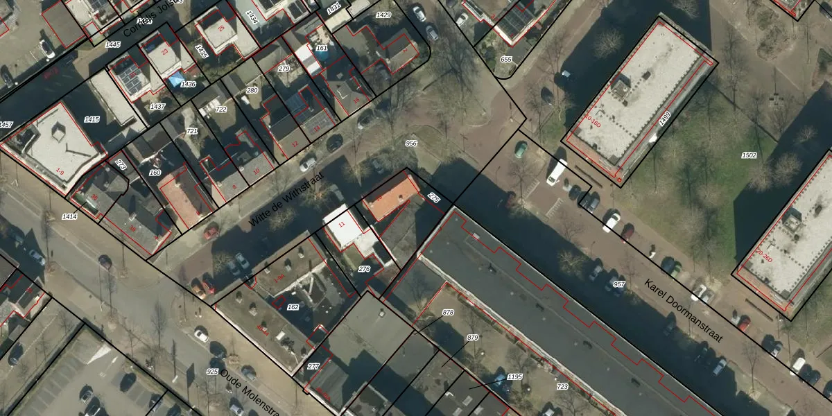 Het perceel waarop Witte de Withstraat 15 staat heeft een oppervlakte van 290 m². Dit is een middelgroot perceel. De perceeloppervlakte wordt geregistreerd door het Kadaster. Gedetailleerde informatie over de maten van dit perceel kunt u vinden in het rapport Kadastrale kaart met maatvoering van Witte de Withstraat 15.