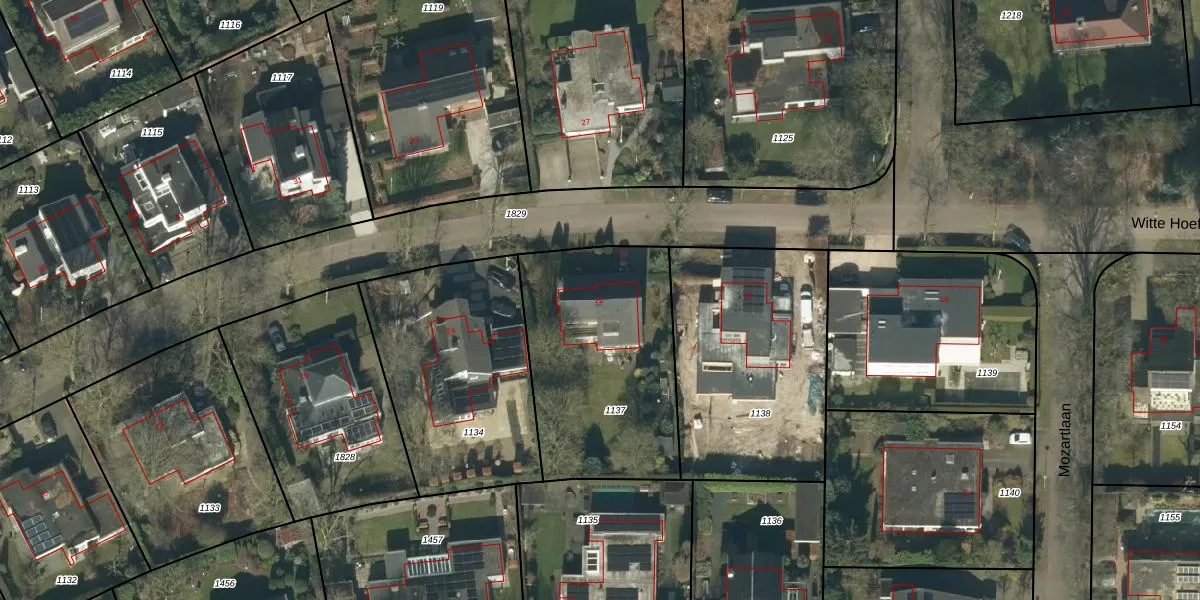 Het perceel waarop Witte Hoeflaan 22 staat heeft een oppervlakte van 946 m². Dit is een groot perceel. De perceeloppervlakte wordt geregistreerd door het Kadaster. Gedetailleerde informatie over de maten van dit perceel kunt u vinden in het rapport Kadastrale kaart met maatvoering van Witte Hoeflaan 22.