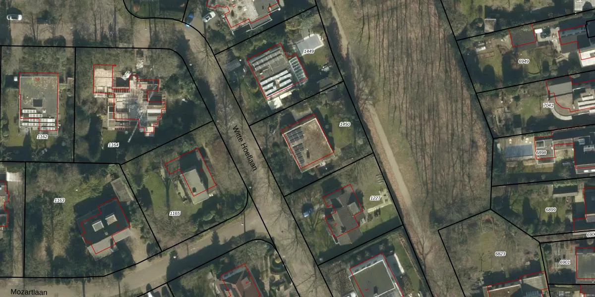Het perceel waarop Witte Hoeflaan 7 staat heeft een oppervlakte van 906 m². Dit is een groot perceel. De perceeloppervlakte wordt geregistreerd door het Kadaster. Gedetailleerde informatie over de maten van dit perceel kunt u vinden in het rapport Kadastrale kaart met maatvoering van Witte Hoeflaan 7.