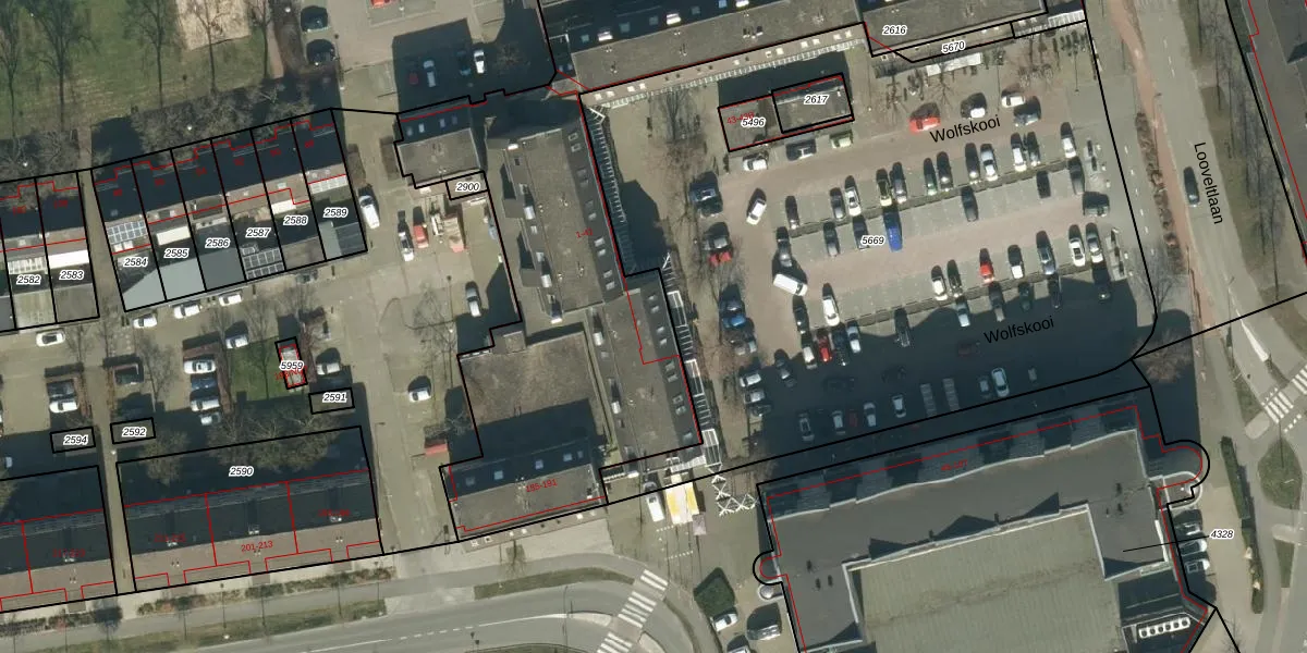 Het perceel waarop Wolfskooi 39 staat heeft een oppervlakte van 3792 m². Dit is een zeer groot perceel. De perceeloppervlakte wordt geregistreerd door het Kadaster. Gedetailleerde informatie over de maten van dit perceel kunt u vinden in het rapport Kadastrale kaart met maatvoering van Wolfskooi 39.