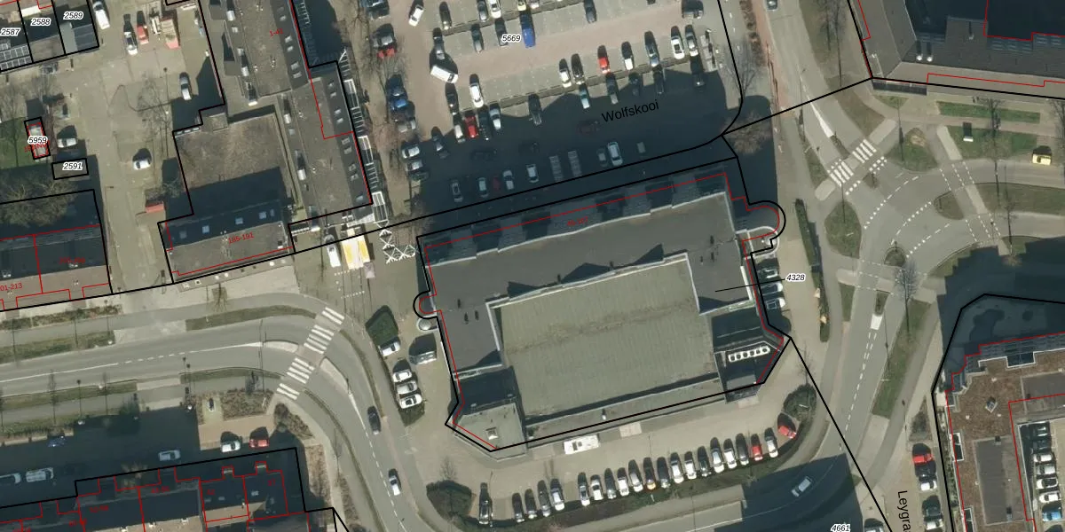 Het perceel waarop Wolfskooi 71 staat heeft een oppervlakte van 2652 m². Dit is een zeer groot perceel. De perceeloppervlakte wordt geregistreerd door het Kadaster. Gedetailleerde informatie over de maten van dit perceel kunt u vinden in het rapport Kadastrale kaart met maatvoering van Wolfskooi 71.