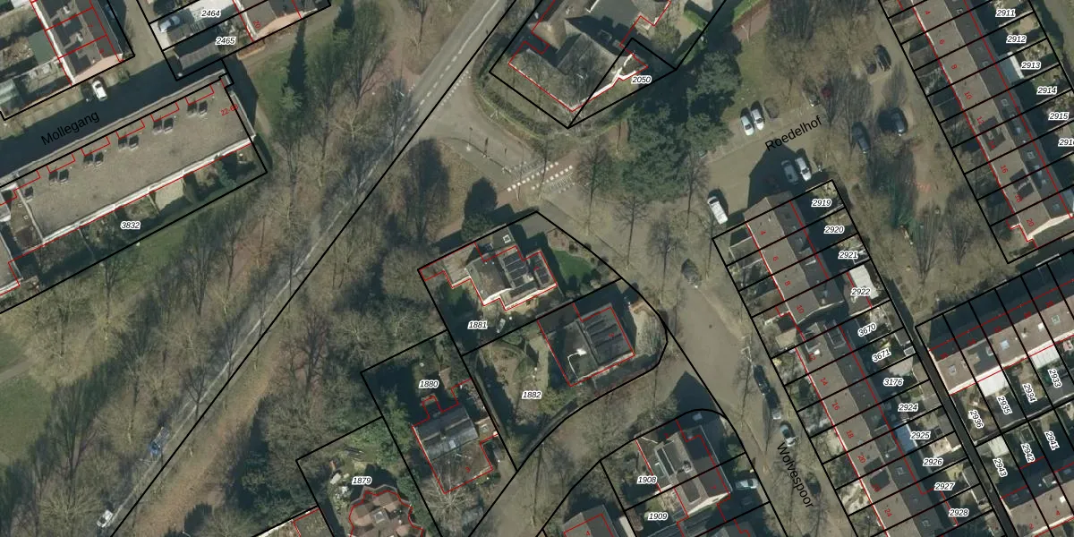 Wolvespoor 1 is gelegen op kadastraal perceel OSS00L1881. Deze kadastrale aanduiding is uniek en wordt gebruikt door het Kadaster om eigendomsrechten en andere zakelijke rechten vast te leggen. Het perceel maakt onderdeel uit van de kadastrale gemeente Oss.