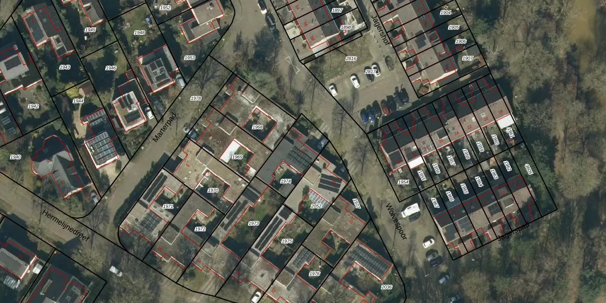 Gebruik de zoekbalk of klik op een perceel voor informatie over de adressen binnen dit perceel.