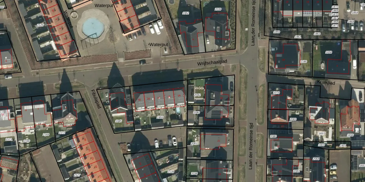 Het perceel waarop Wrijfschaalpad 1-A staat heeft een oppervlakte van 762 m². Dit is een groot perceel. De perceeloppervlakte wordt geregistreerd door het Kadaster. Gedetailleerde informatie over de maten van dit perceel kunt u vinden in het rapport Kadastrale kaart met maatvoering van Wrijfschaalpad 1-A.