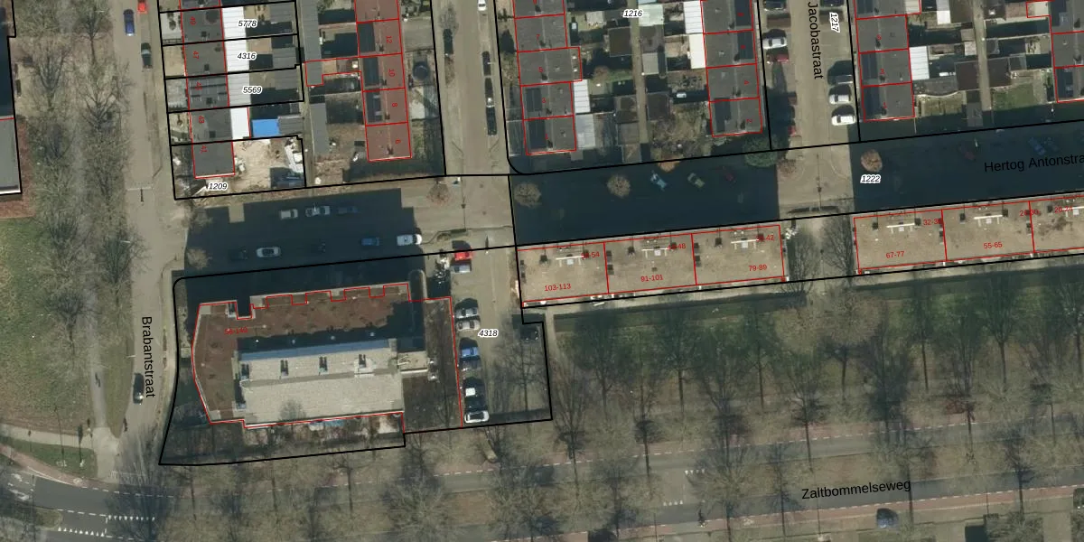Het adres is gelegen op perceel 1221 in de sectie K en de kadastrale gemeente Oss. De kadastrale aanduiding is aldus OSS00-K-1221. De gemiddelde perceelgrootte in Oss is 2394,22 m². Dit perceel is kleiner: de perceeloppervlakte bedraagt 2011 m². Het grootste perceel in de kadastrale gemeente is 36,1 ha. Het kleinste perceel heeft een oppervlakte van 0 m². Op het perceel zijn 81 adressen aanwezig. In de Basisregistratie Kadaster (BRK) werden de grenzen van het perceel geregistreerd op 01-09-2011.